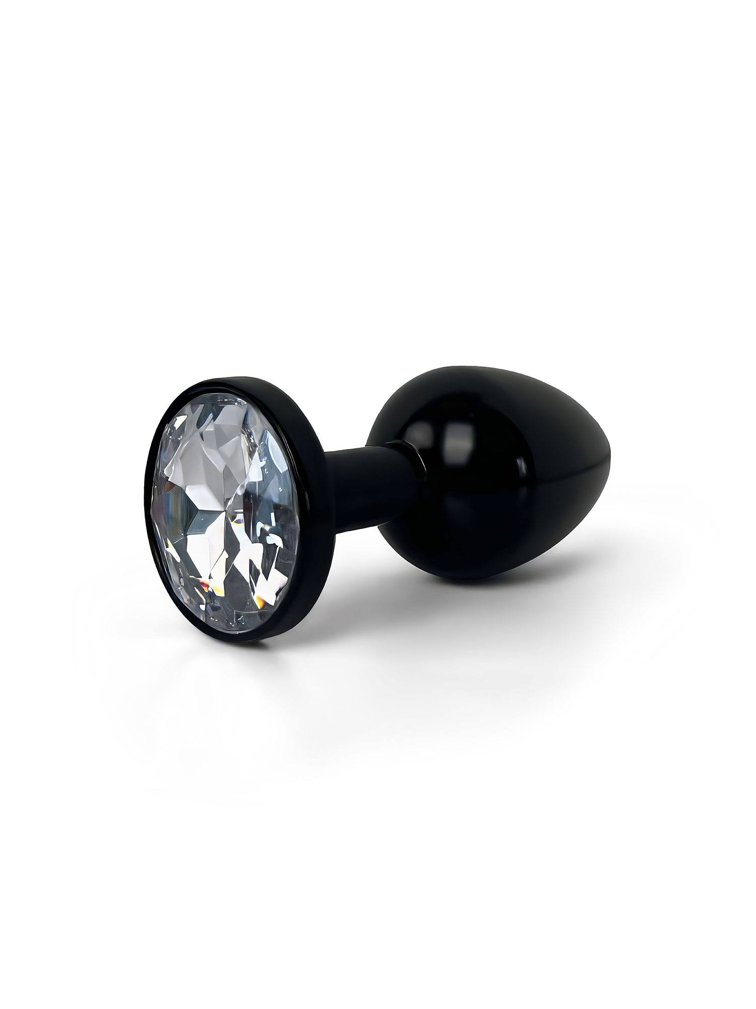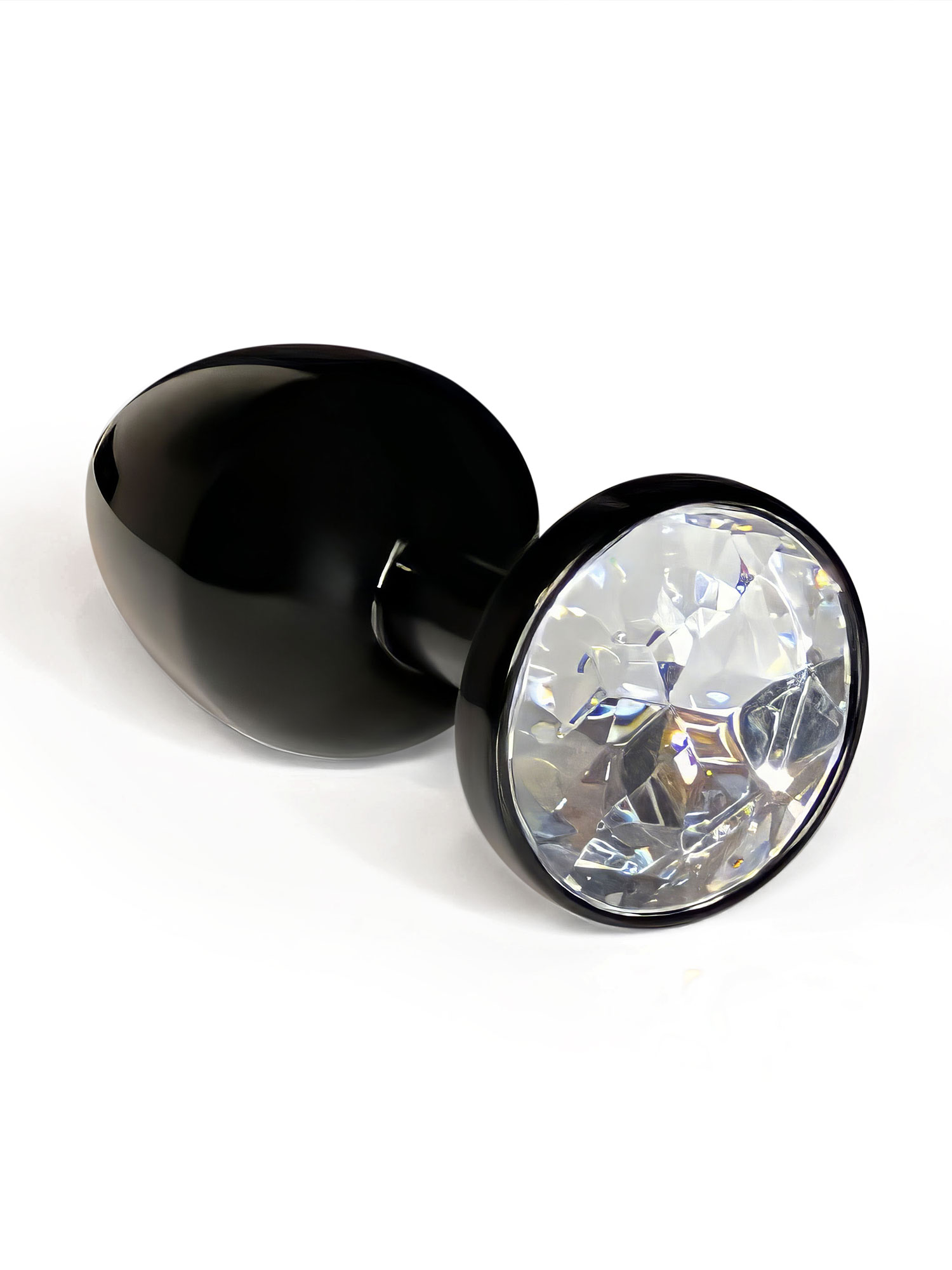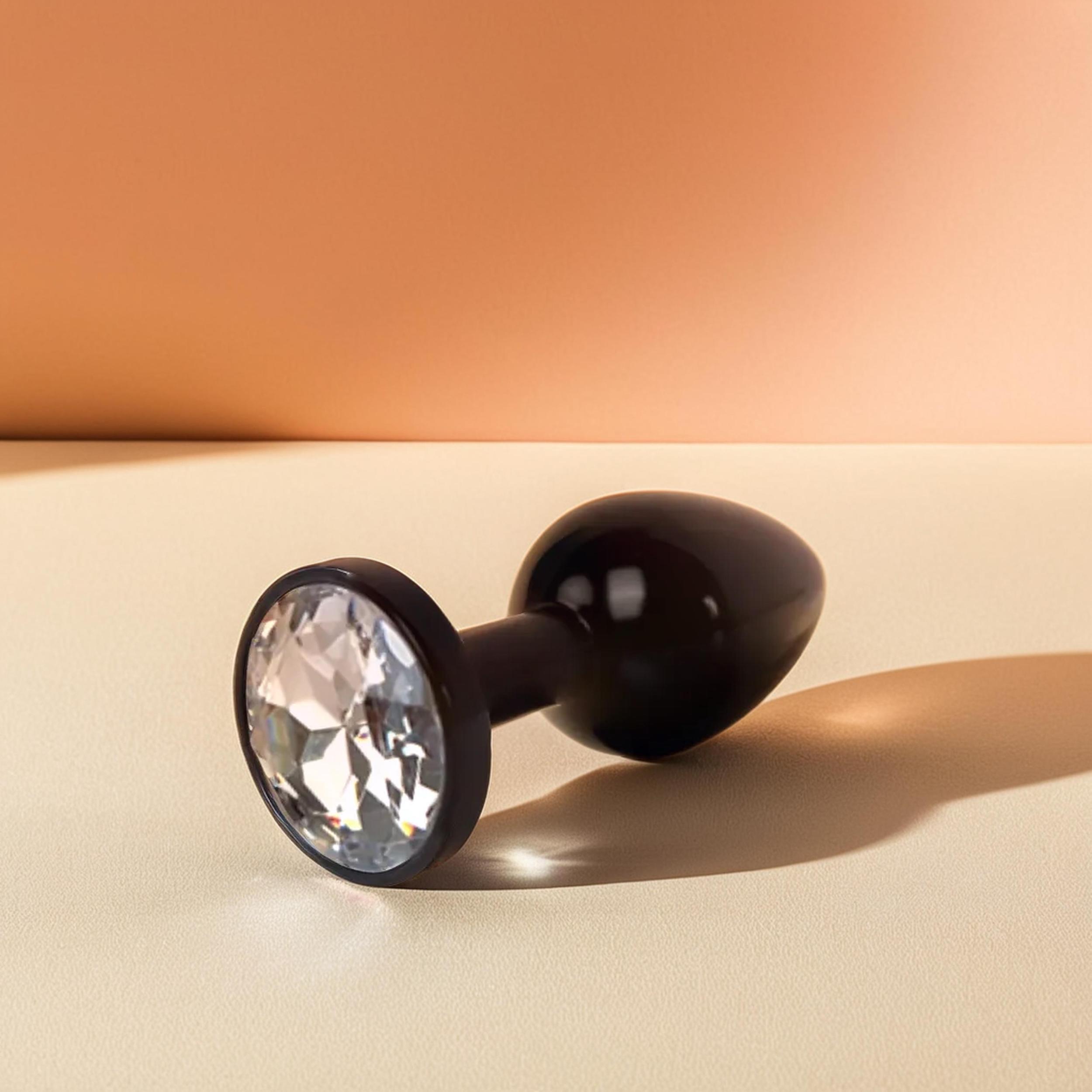 Анальная пробка металлическая черная с белым кристаллом Fantasy Toys (S)