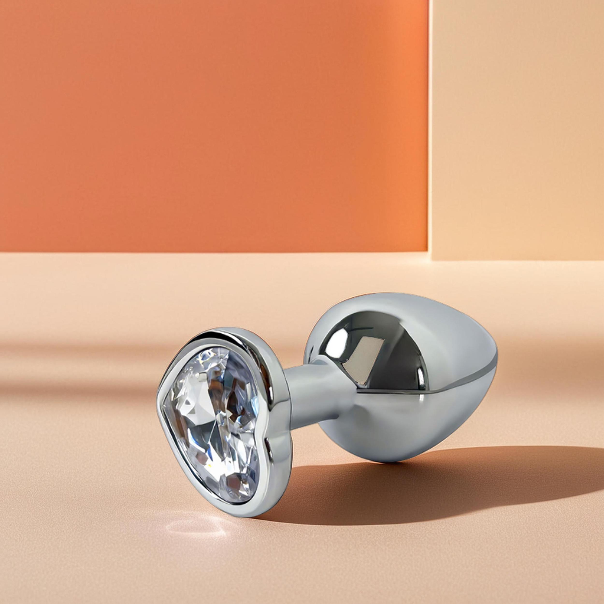 Анальная пробка металлическая с белым кристаллом в виде сердца Fantasy Toys (M)