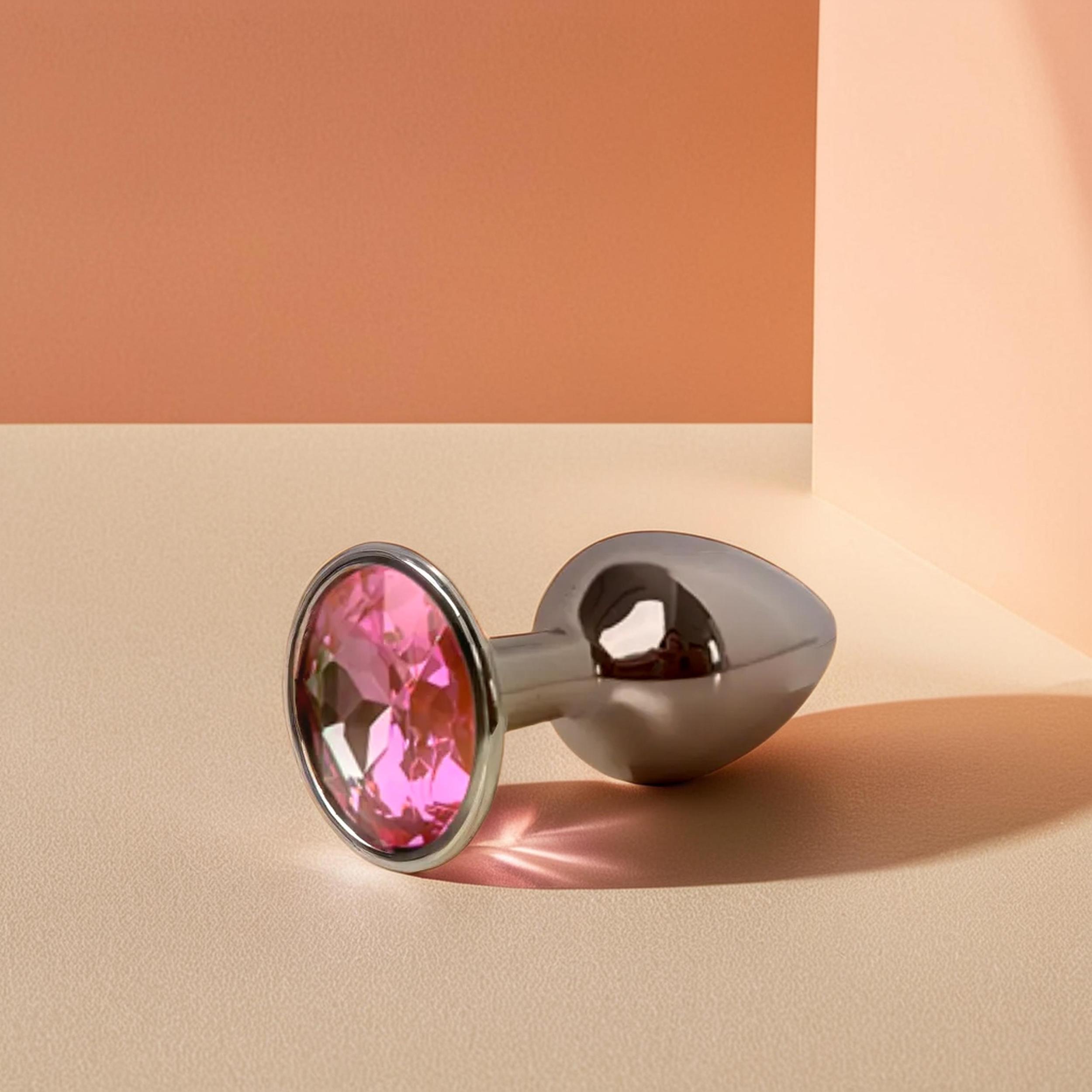 Анальная пробка металлическая с розовым кристаллом Fantasy Toys (S)