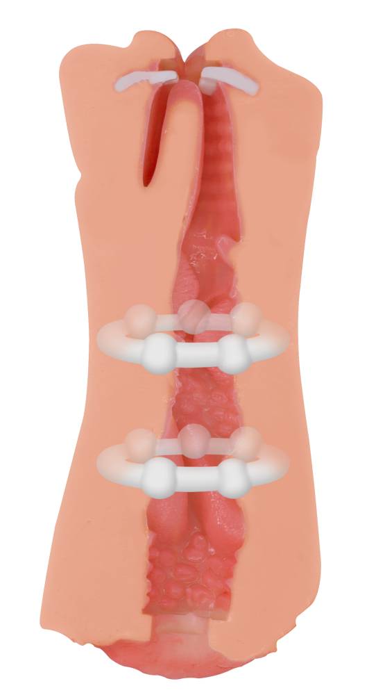 Он выполнен в виде двух любовных отверстий: вагины с мурашками на коже и женского ротика (раскрашенного вручную) с белоснежными зубками, подвижным язычком и гландами. Рельефная внутренняя текстура которой напоминает анатомическое строение девушки, и для создания которой применяется двойная заливка материала.