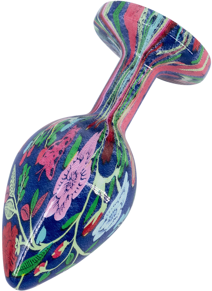 Эмалированная алюминивая анальная пробка с цветочным узором и кристаллом – это декоративное украшение, имеющее проникающую анальную часть и имитацию драгоценного камня круглой формы в основании. Идеально подходит для украшения тела, сужения влагалища, подготовки к анальному сексу.